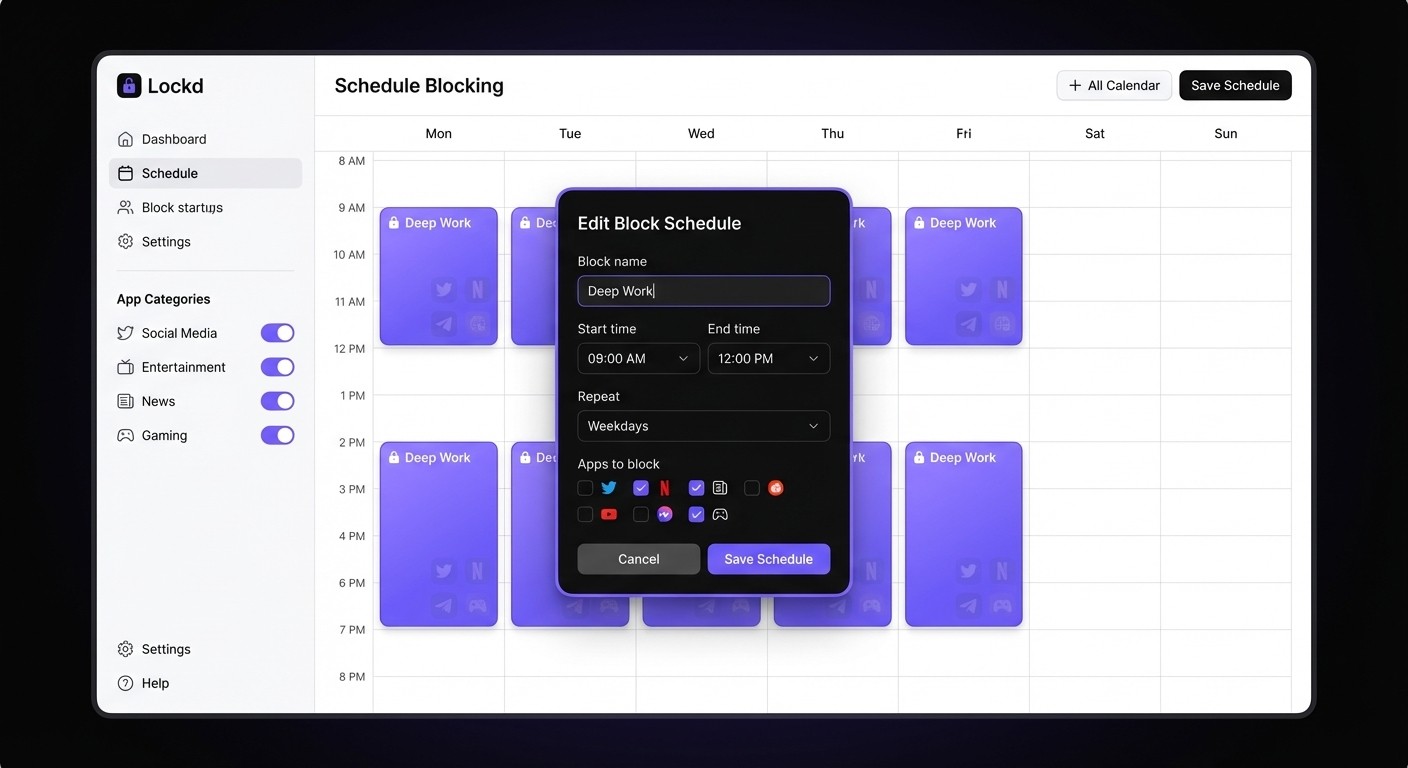The productivity platform that's impossible to cheat. Block apps and websites at the OS level, track your focus, and finally become the person you keep saying you'll be.